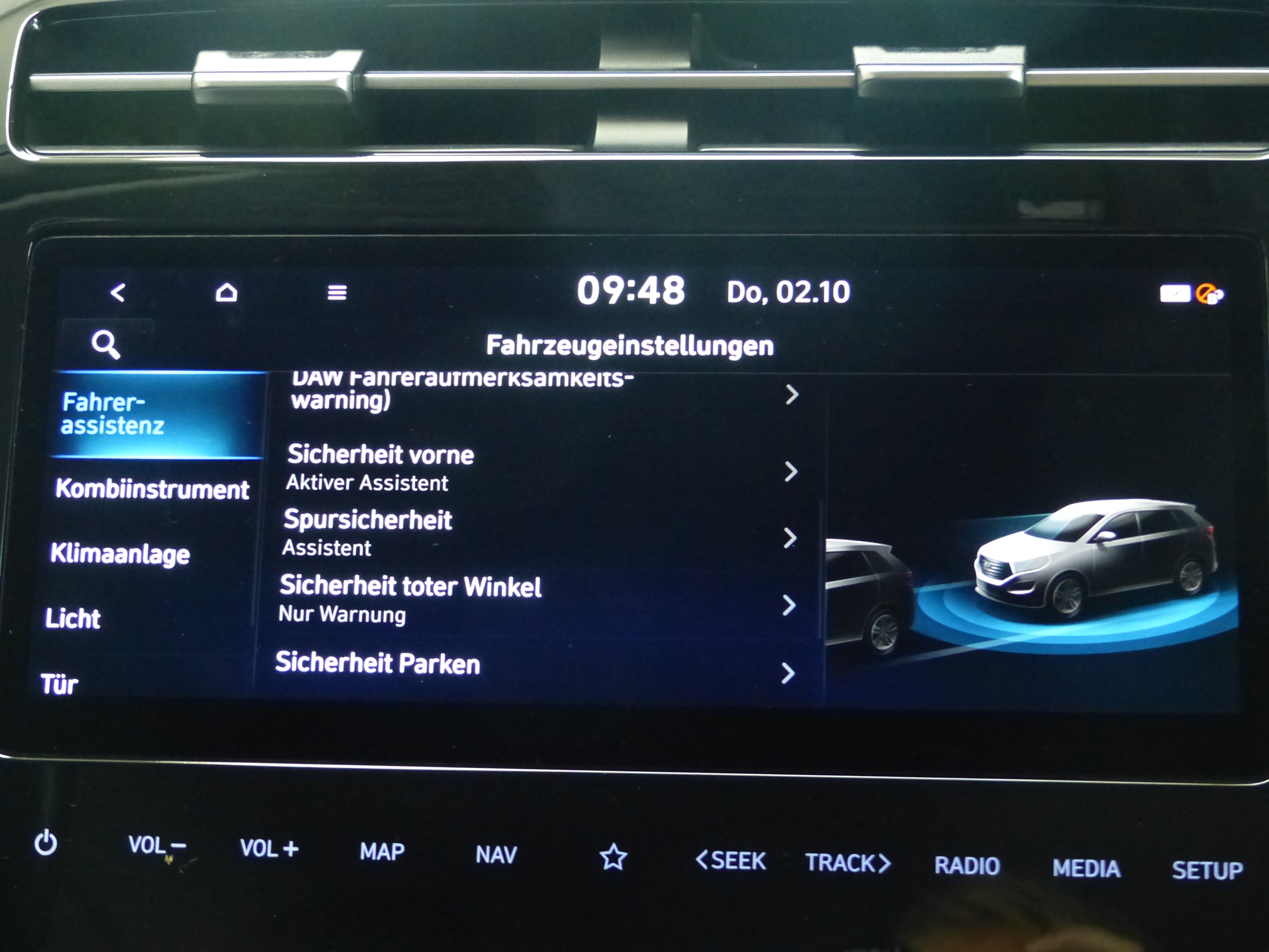 - Fahrassistenz-System: aktiver Spurhalteassistent (LKAS, Lane Keep Assist System)